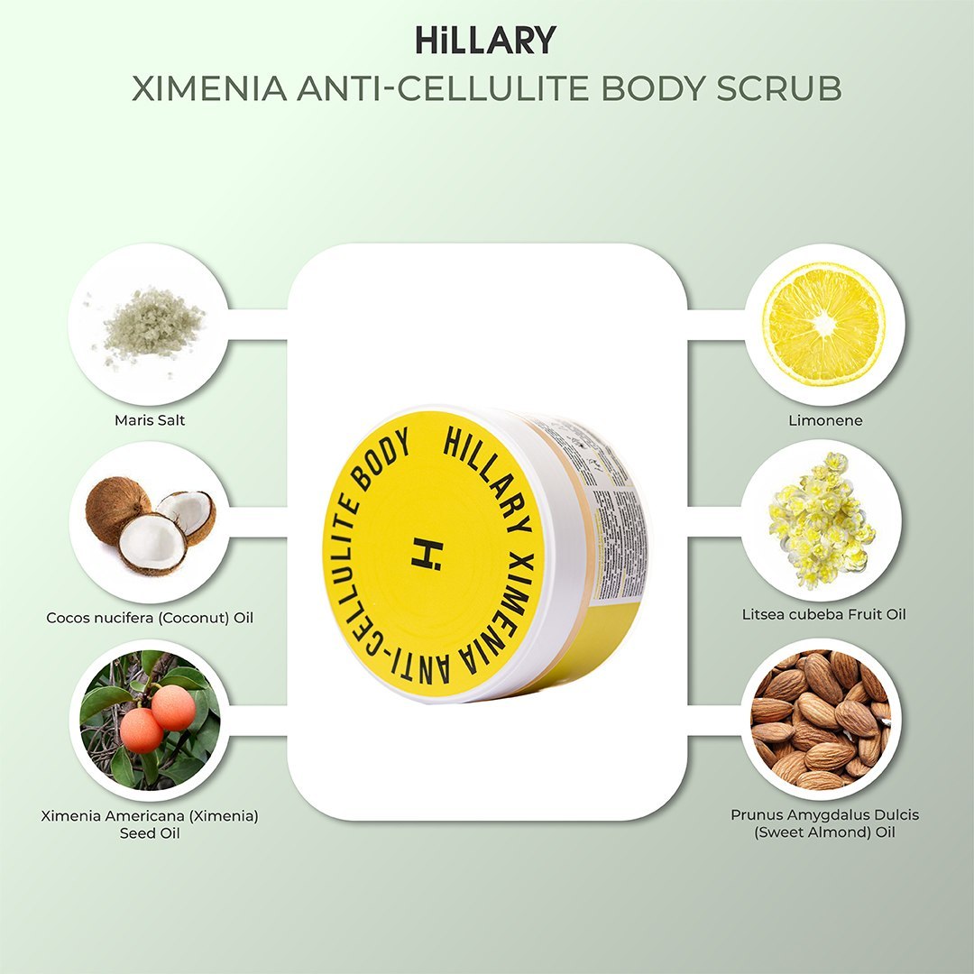 Antycellulitowy peeling do ciała z ximenia Hillary Ximenia, 200 g