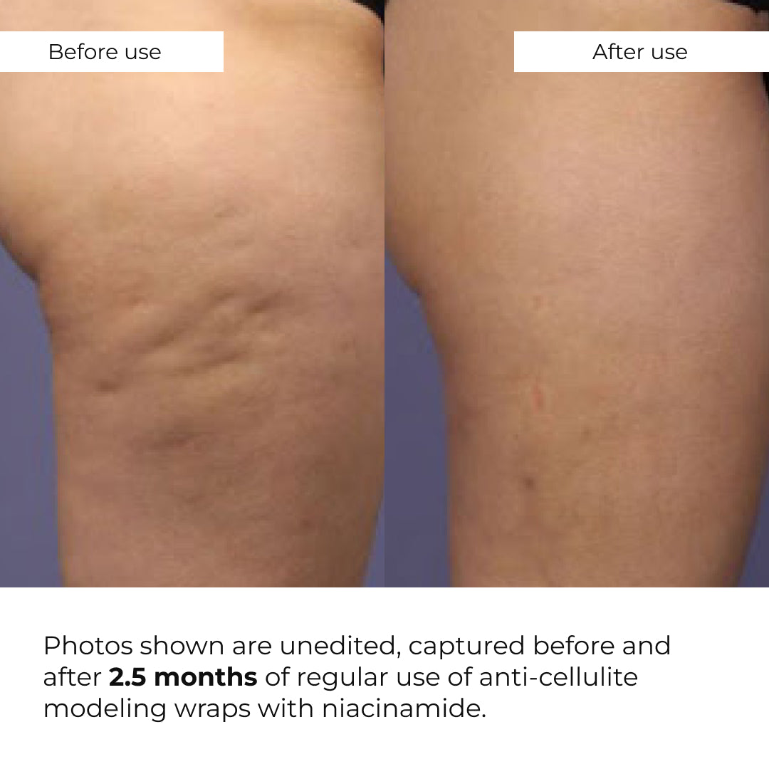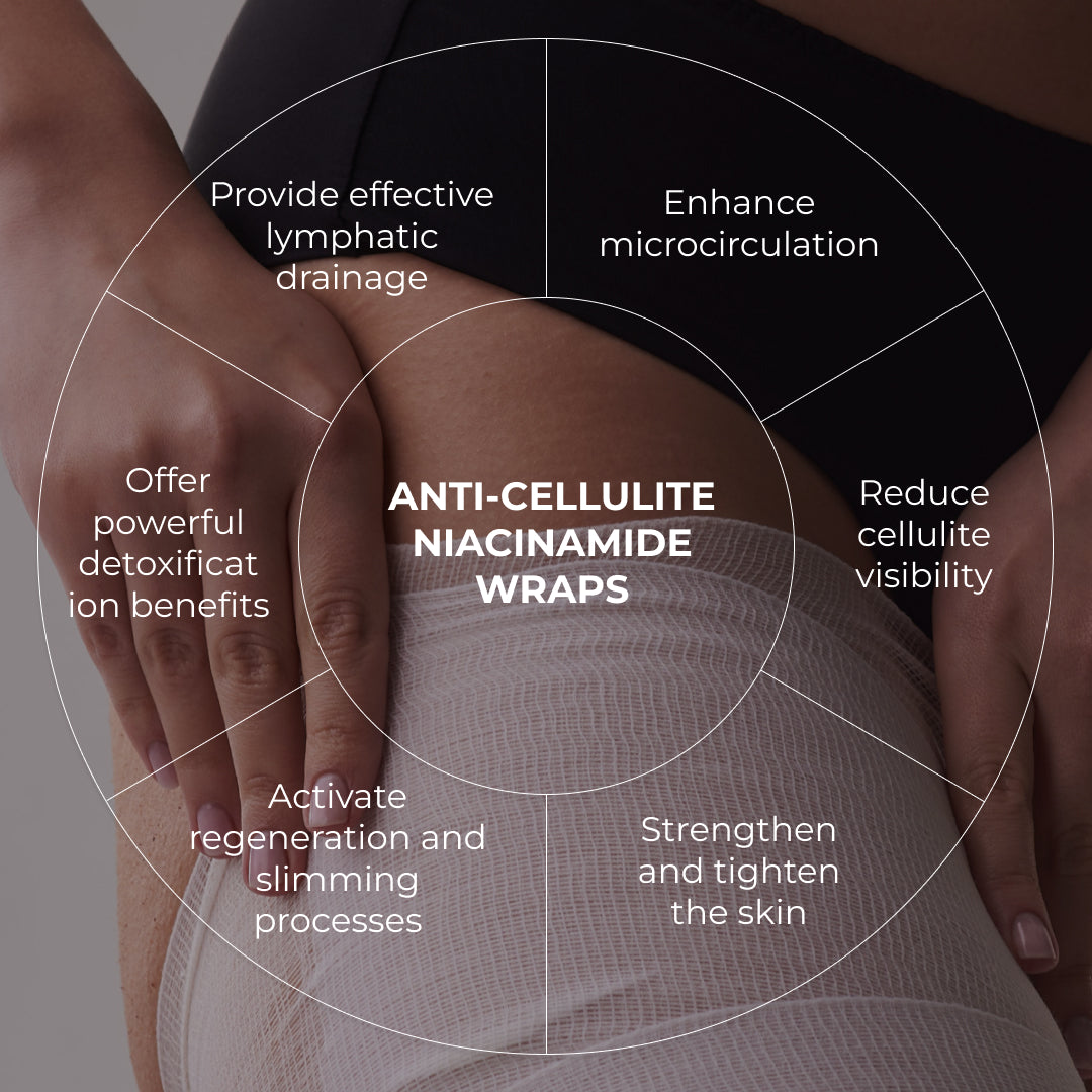 Teraz profesjonalny zabieg redukcji cellulitu jest dostępny w warunkach domowych dzięki antycellulitowym modelującym bandażom do ciała z niacynamidem.