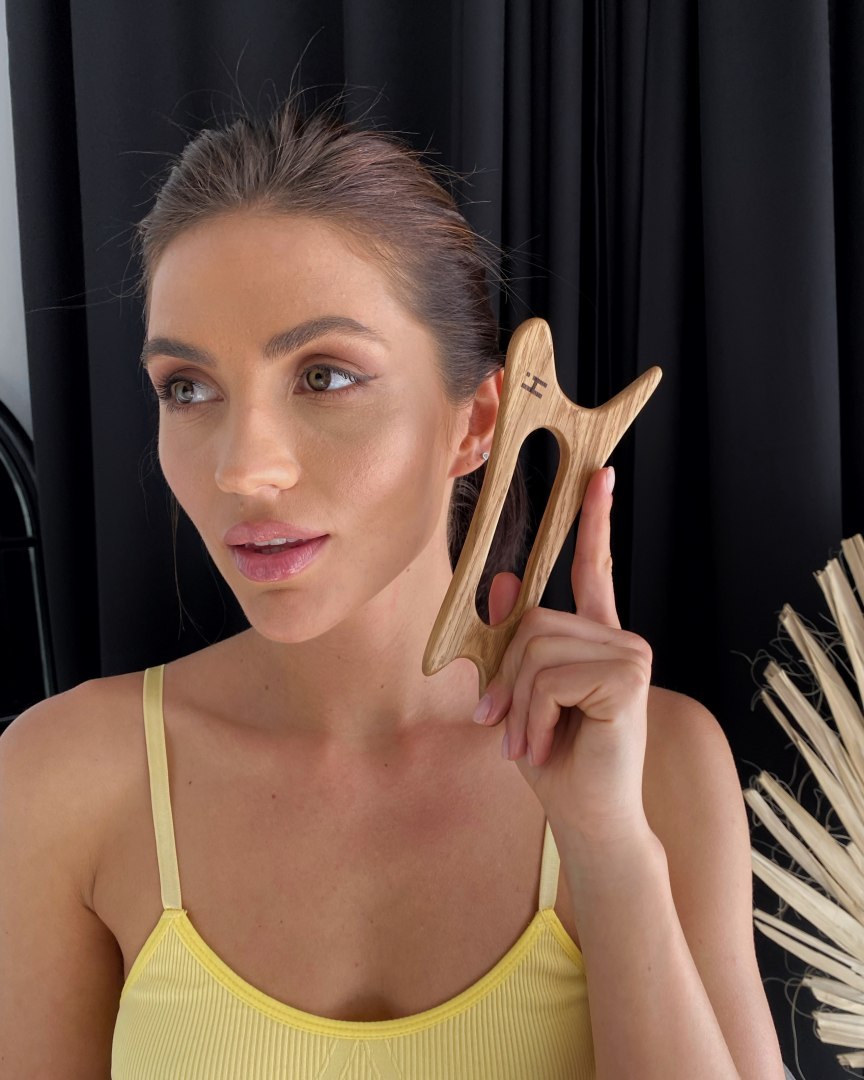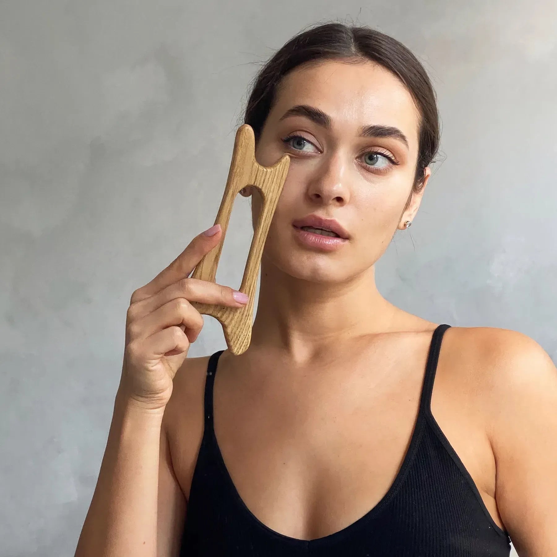 Drewniany skrobak do masażu twarzy i ciała Guasha Lań Hillary