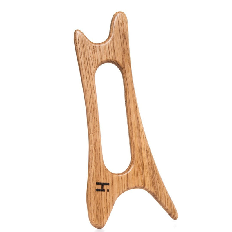 Drewniany skrobak do masażu twarzy Guasha Hillary, wykonany jest z naturalnego drewna dębowego przy użyciu specjalnej technologii: suche drewno, które przechodzi 4 rodzaje szlifowania i ma specjalną powłokę - połączenie oleju i twardego wosku OSMO TopOil 3028, który krystalizuje górną warstwę drewna.