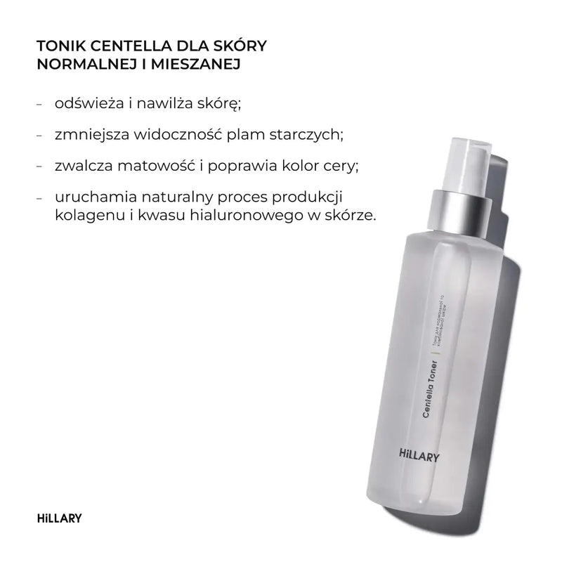 Nałóż tonik Hillary Centella Toner na oczyszczoną skórę.