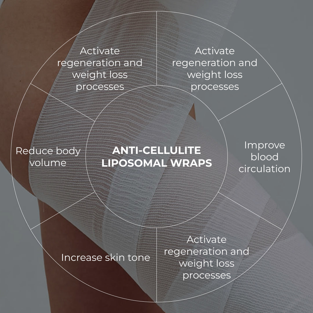 Kompleks składa się z 6 opakowań bandaży nasączonych aktywnym płynem, który ma działanie chłodzące, tonizujące i drenaż limfatyczny. Zabieg redukujący cellulit, poprawiający koloryt skóry i wzmacniający naczynia krwionośne.