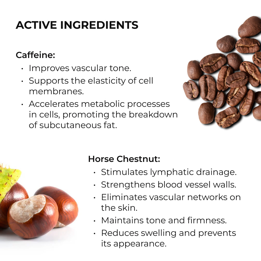 - przyspiesza procesy metaboliczne w komórkach, powodując rozpad podskórnej tkanki tłuszczowej.