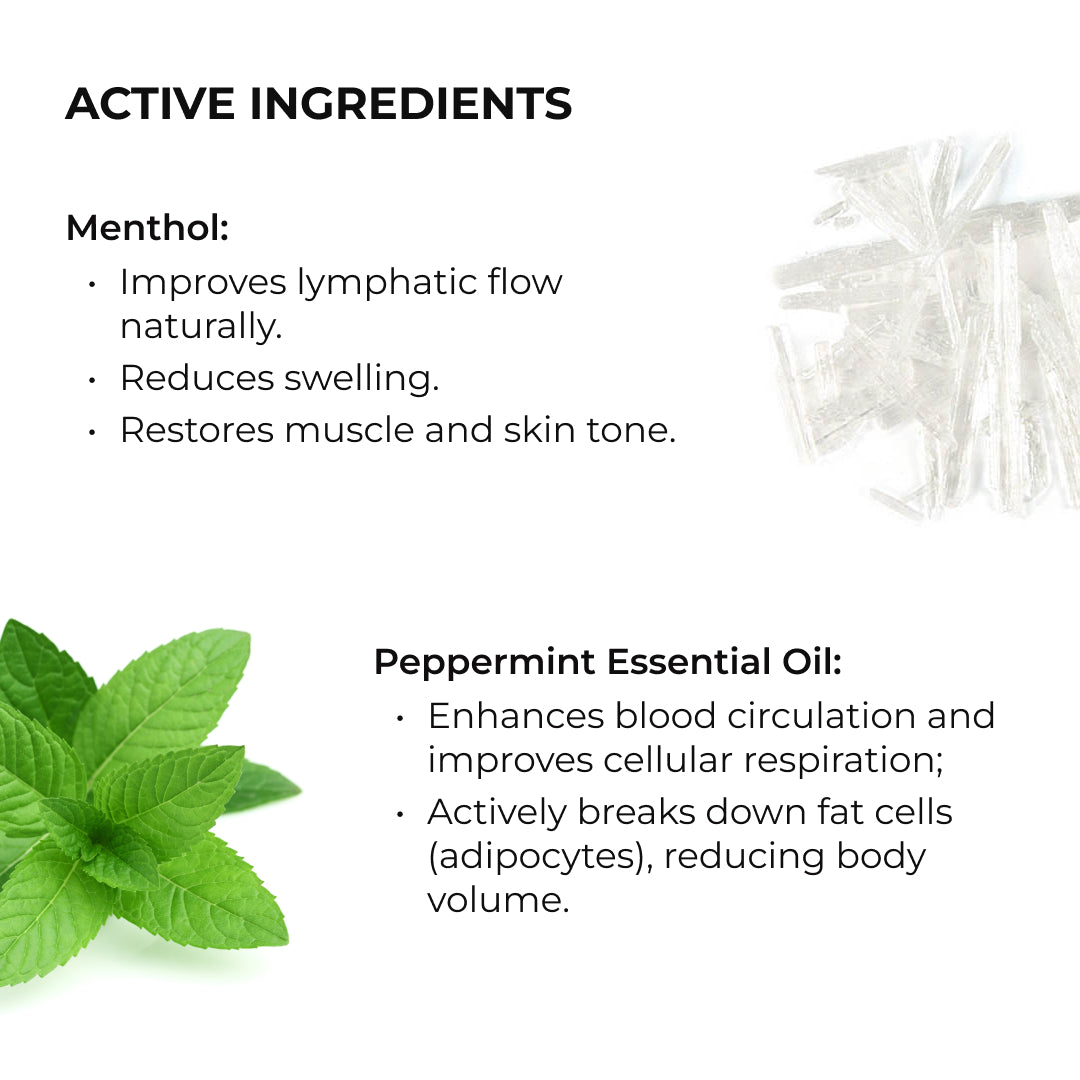Bandaże nasączone aktywnym płynem, wywołują efekt chłodzenia, który wygładza skórę i znacznie poprawia jej napięcie. Bandaże przeznaczone są do miejsc najbardziej narażonych na cellulit - brzucha, ud i pośladków.
