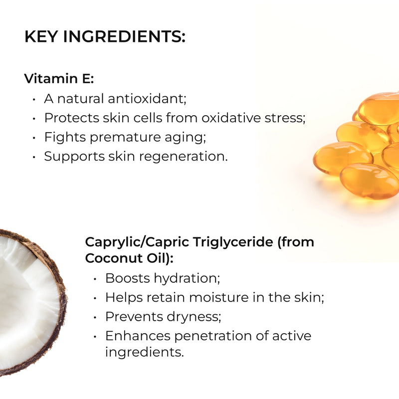Olej ze słodkich migdałów i kokosa nawilżają skórę, zwiększają jej elastyczność, a ekstrakt z ashwagandhy, dzięki swoim właściwościom antyoksydacyjnym, pomaga skórze wyglądać zdrowo i świeżo.