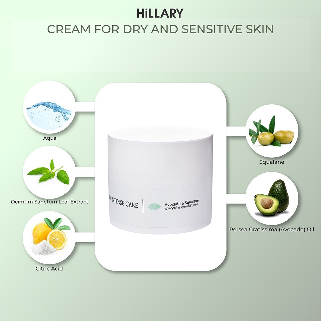 Krem do skóry suchej i wrażliwej Hillary Corneotherapy Intense Сare Avocado & Squalane, 50 ml