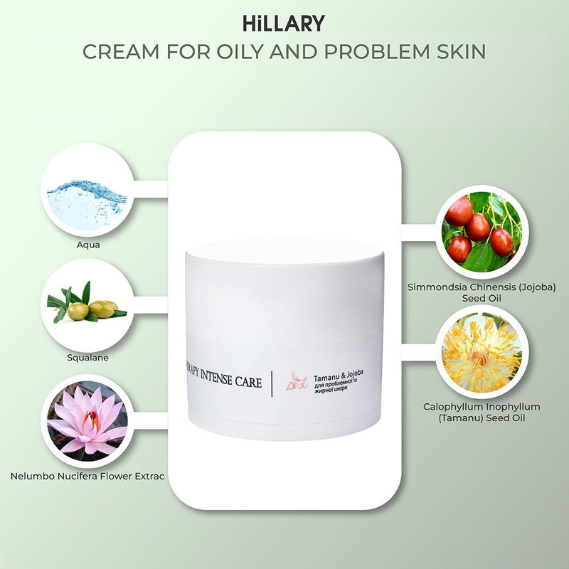 Krem do skóry tłustej i problematycznej Hillary Corneotherapy Intense Сare Tamanu & Jojoba, 50 ml