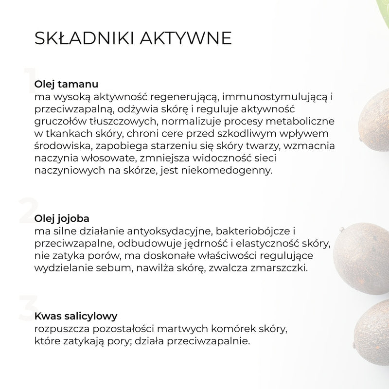 Krem z tamanu i jojobą to moje odkrycie! Idealnie sprawdza się przy cerze z wypryskami – łagodzi, nawilża i przyspiesza regenerację skóry bez efektu błyszczenia.