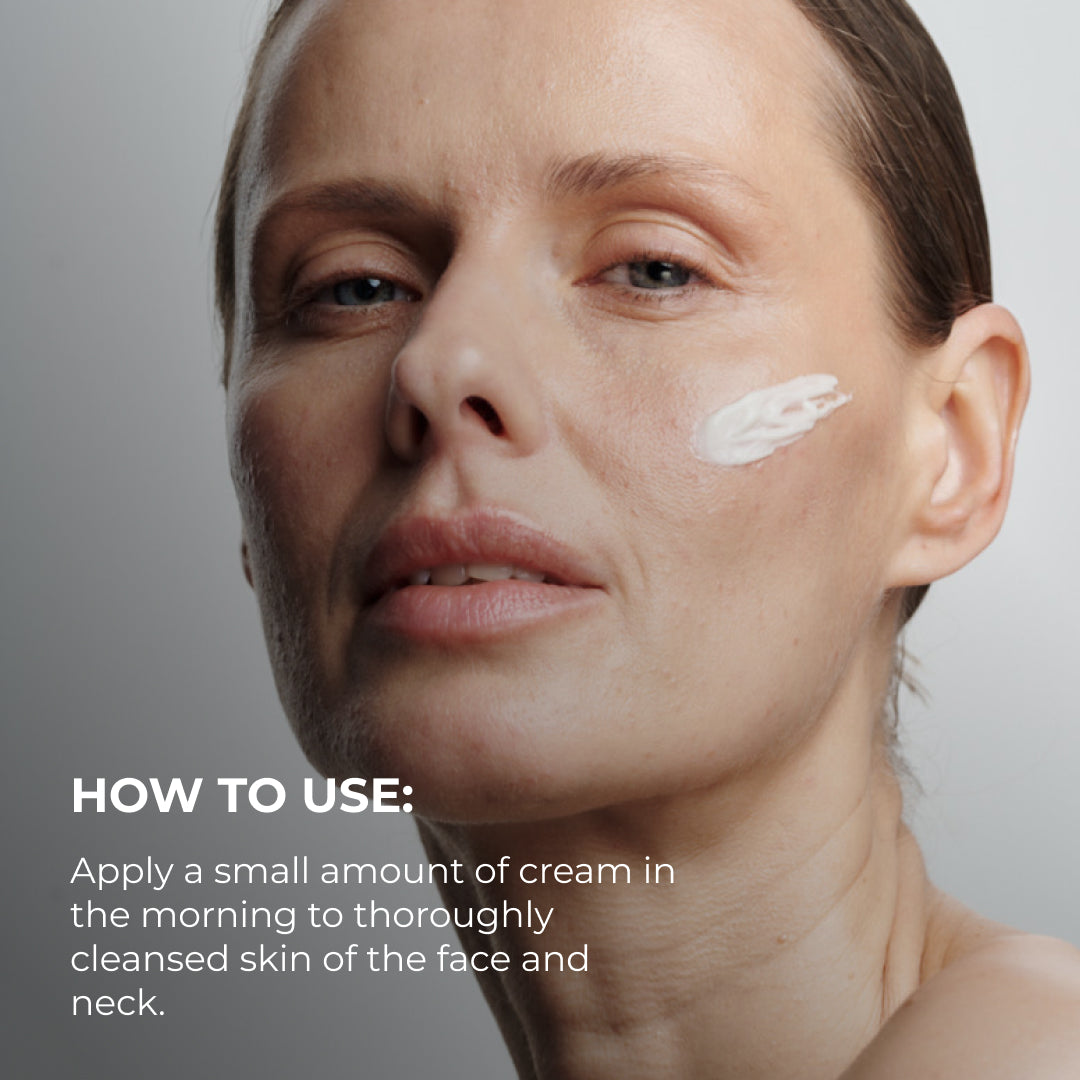 Sposób użycia: Nanieś niewielką ilość kremu rano na dokładnie oczyszczoną skórę twarzy i szyi.