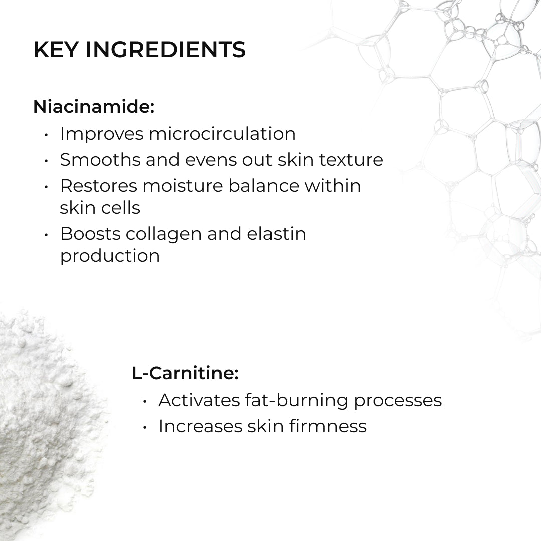 Kompleksowa pielęgnacja ciała z niacynamidem pomaga skutecznie zwalczać cellulit, poprawiać strukturę skóry i zwiększać jej jędrność.