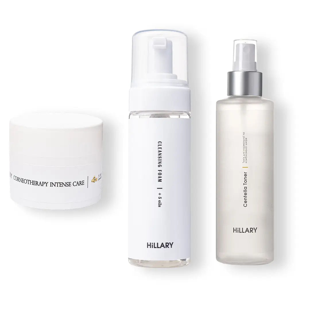Na koniec nałóż na oczyszczoną skórę krem do twarzy Hillary Corneotherapy Intense Сare 5 oil, wmasowując go aż do całkowitego wchłonięcia.