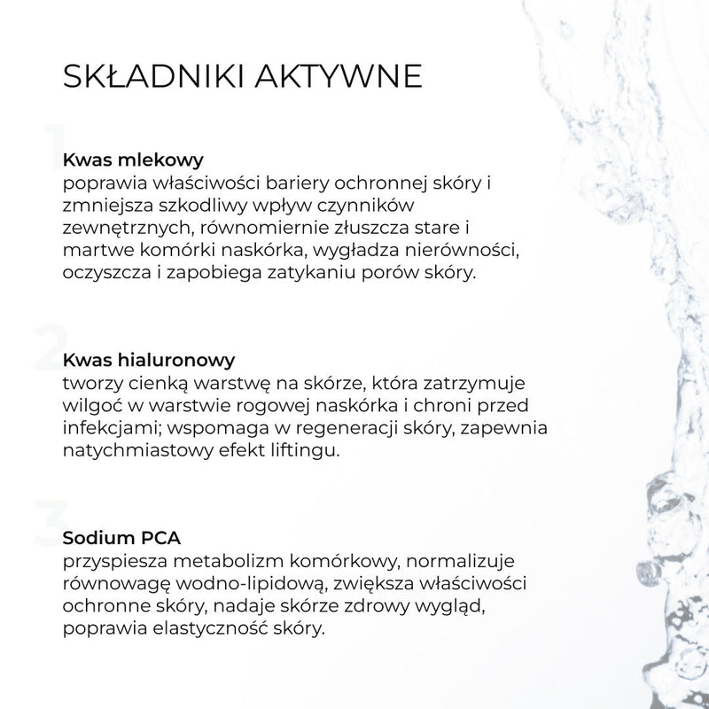 Nałóż tonik z kwasem mlekowym na oczyszczoną skórę.