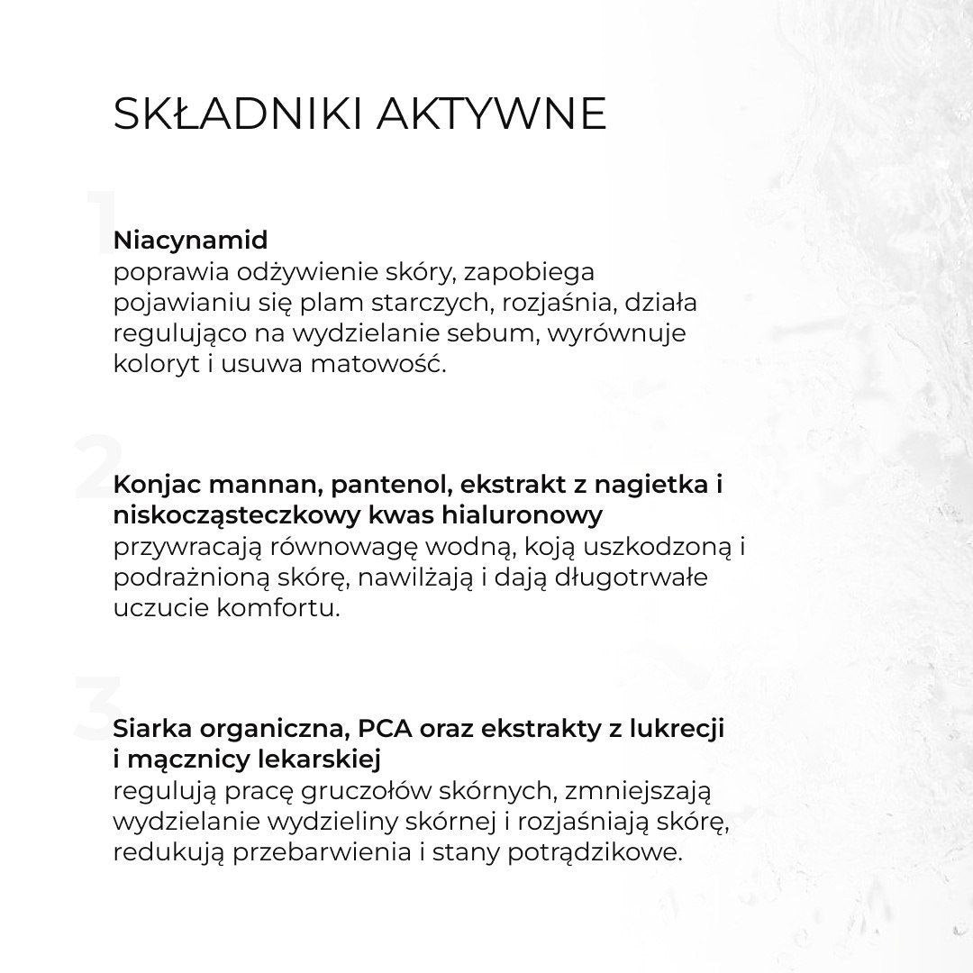 Niacynamid 7% + Cynk PCA 2% + Pantenol 3% + Organiczna siarka 2%