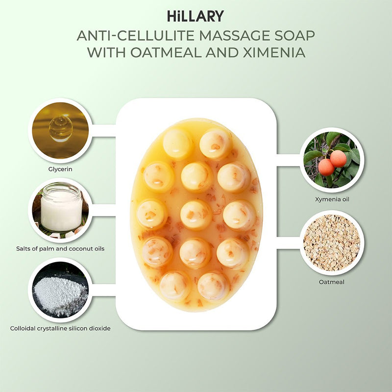 Mydło do masażu antycellulitowego z płatkami owsianymi i ximenia Hillary, 100 g