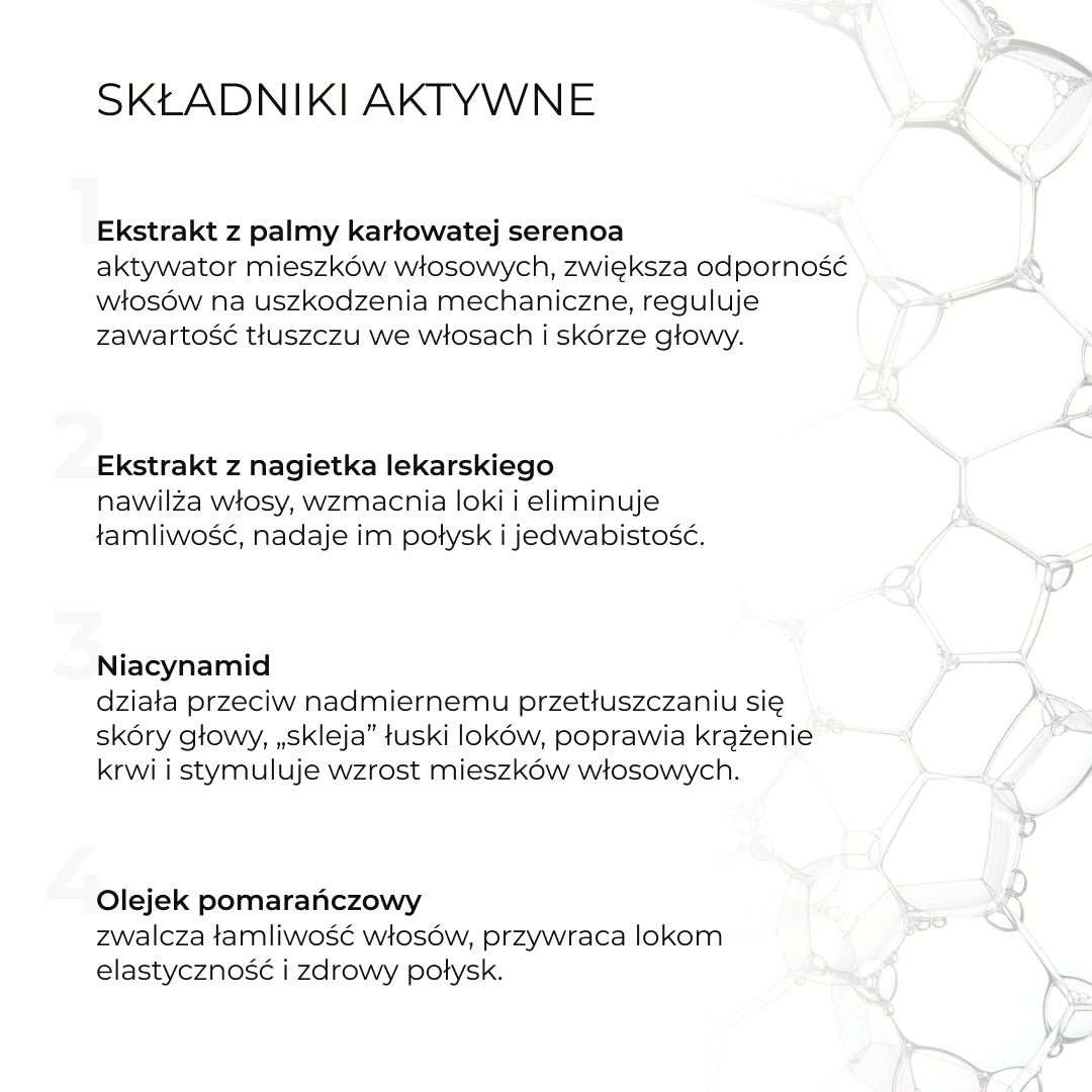 - wzmacnia loki i zapobiega łamaniu się włosów;