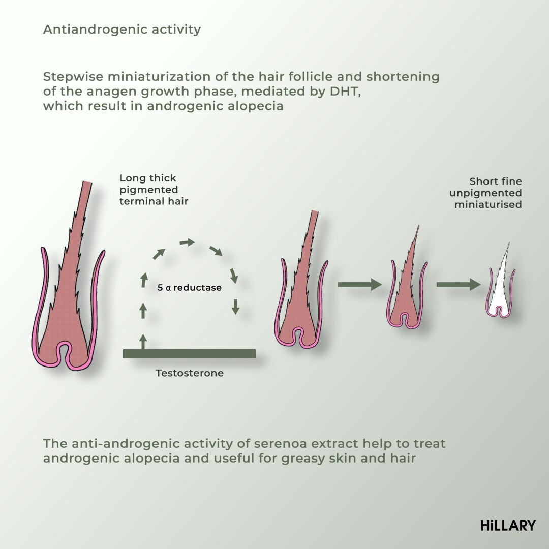 Zawiera ekstrakty z serenoa, zielonej herbaty, tymianku, nagietka, niacynamid oraz olejek eteryczny z pomarańczy.