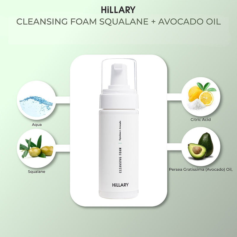 Pianka oczyszczająca do skóry suchej i wrażliwej Hillary Cleansing Foam Squalane + Avocado Oil, 150 ml