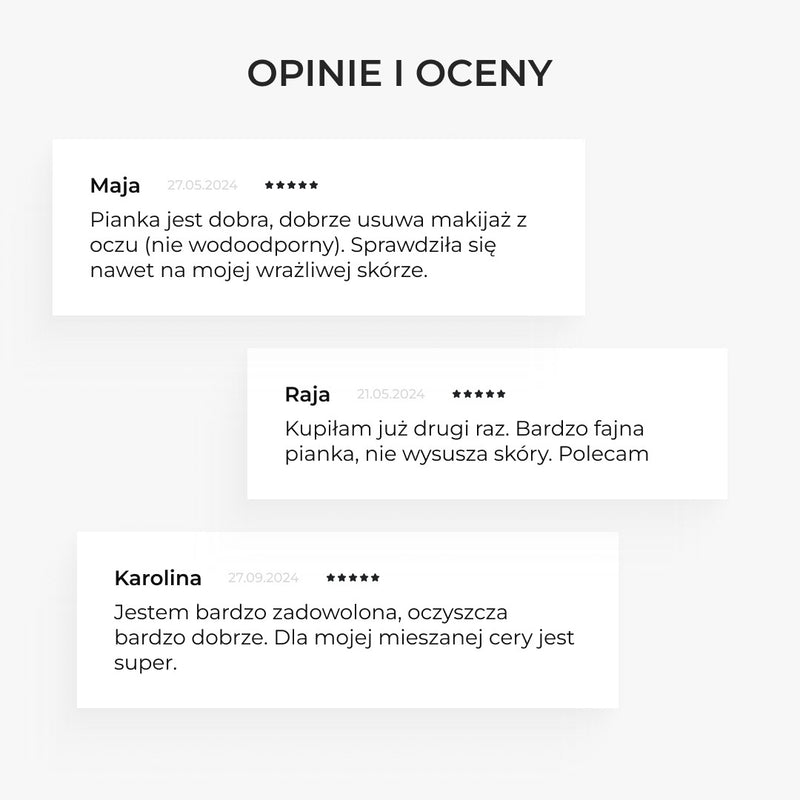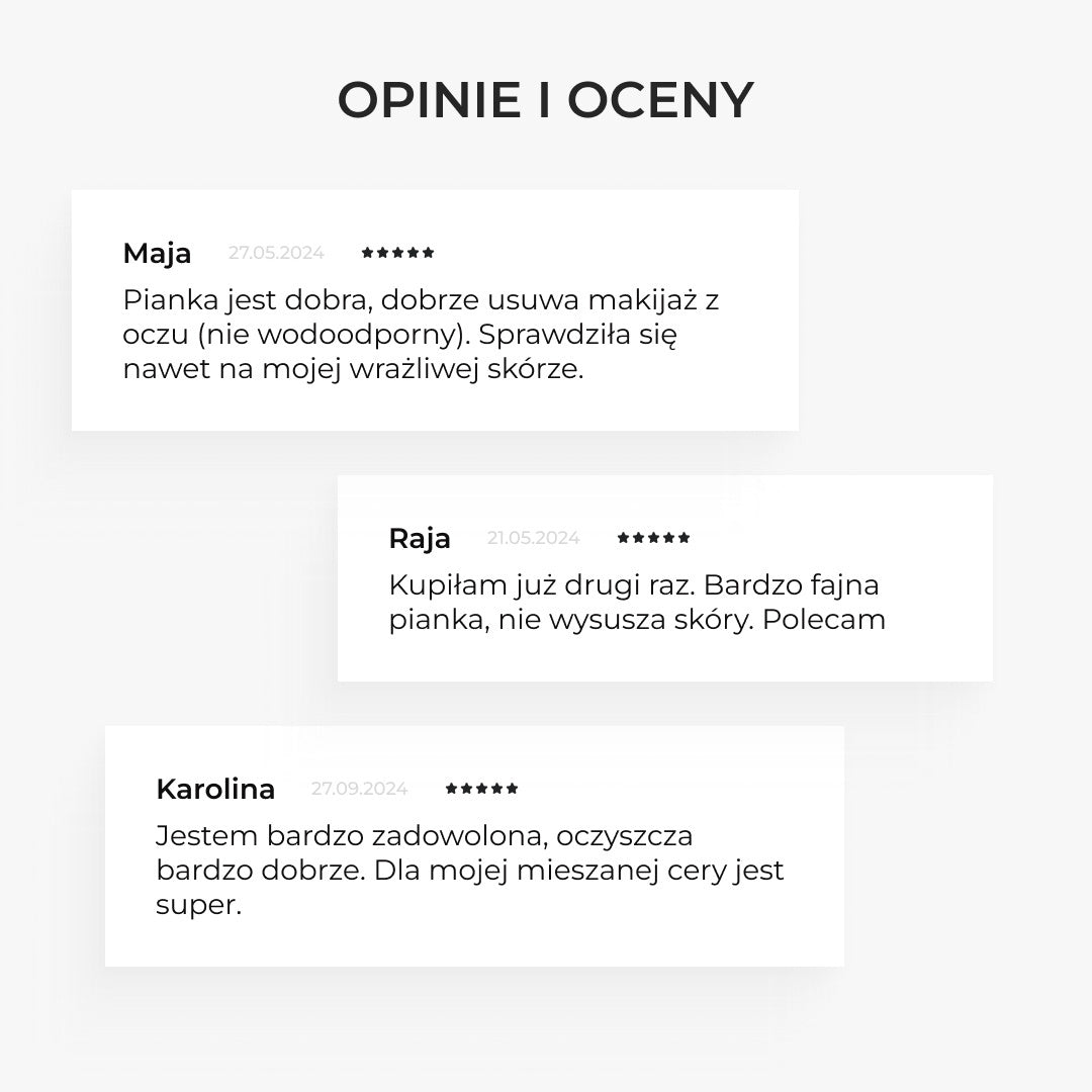 Nałożyć niewielką ilość pianki na zwilżoną twarz, wykonując lekkie ruchy masujące, a następnie dokładnie spłukaj wodą.