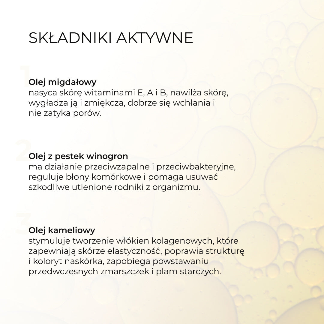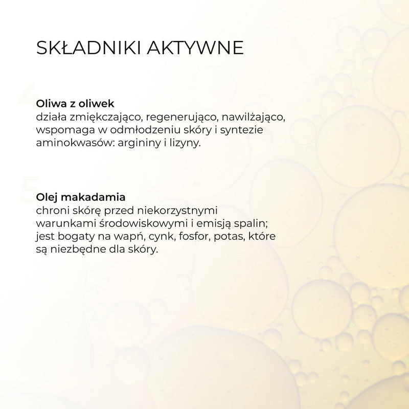 - Zawiera olejki roślinne, które przywracają skórze odpowiedni poziom nawilżenia.