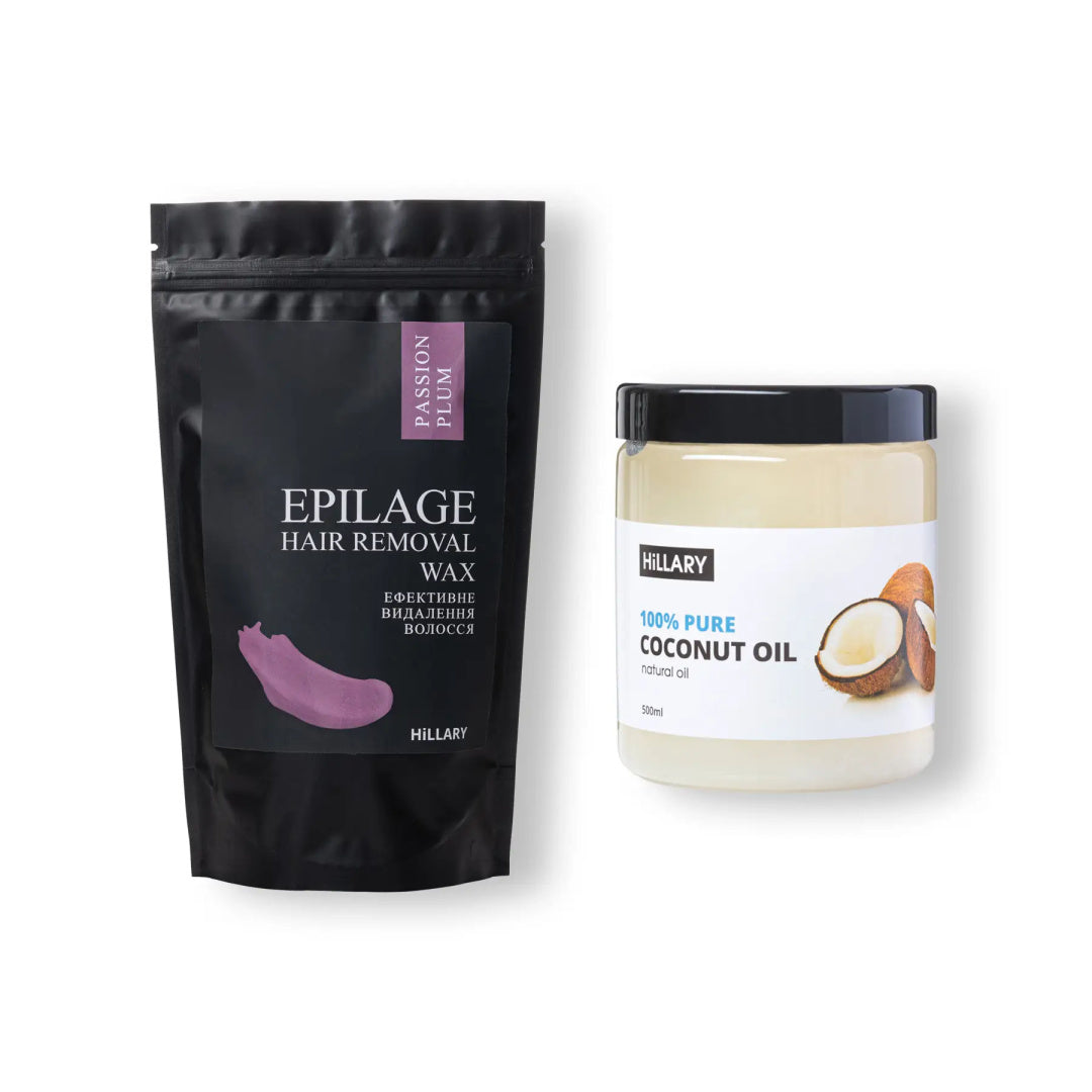Refined Coconut Oil Hillary 100% Pure Coconut Oil, 500 ml + Epilation Granules Hillary Epilage Passion Plum, 100 g