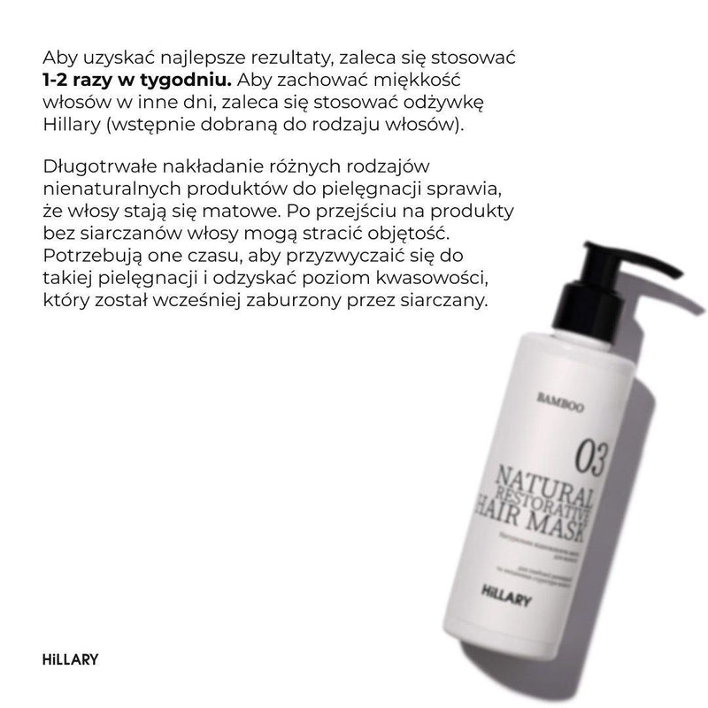 Aby uzyskać najlepsze rezultaty, zalecamy stosowanie maski 1-2 razy w tygodniu. Aby utrzymać efekt miękkości, w pozostałe dni używaj odżywki do włosów Hillary, dobranej do rodzaju włosów.
