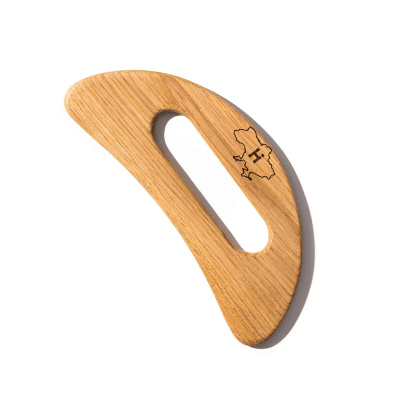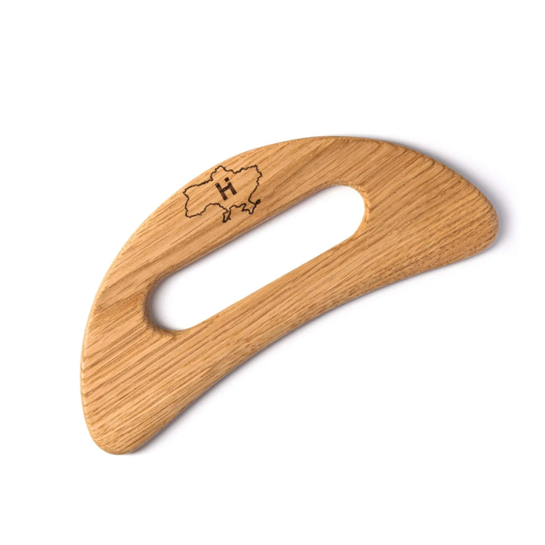 Zestaw do domowej kuracji antycellulitowej zawiera drewniany skrobak do masażu Gua Sha, który stymuluje płyny podskórne, w tym limfę, w celu wyeliminowania cellulitu.