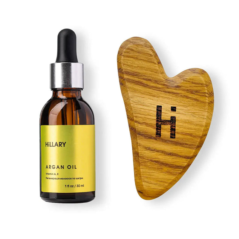 Skrobak drewniany do twarzy + Naturalny olejek arganowy