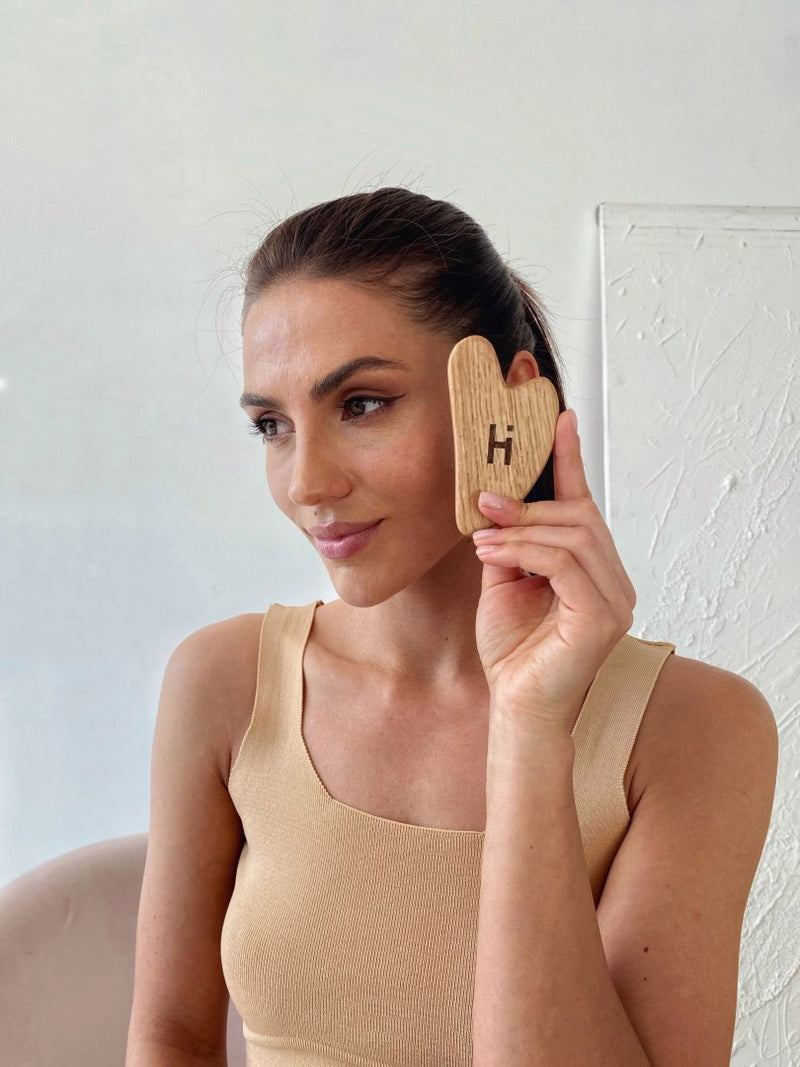 Drewniany skrobak Hillary do masażu twarzy dzięki aktywnemu przepływowi krwi wyraźnie poprawia kondycję skóry. Twarz zyskuje zdrowy blask i piękne rysy.
