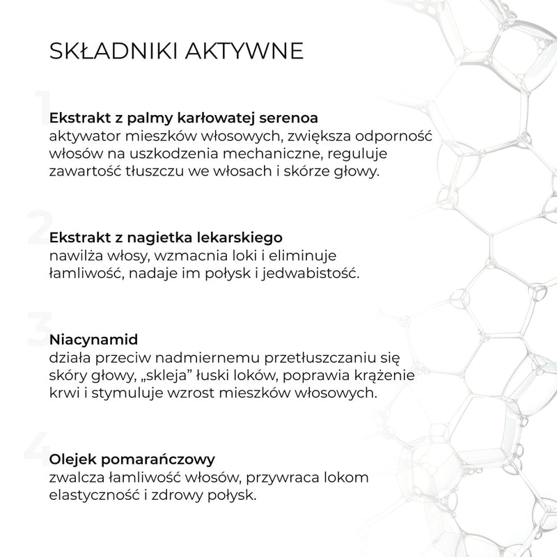 !!! Zalecamy stosowanie zestawu w połączeniu z serum przeciw wypadaniu włosów, szczególnie w przypadkach związanych z androgenowym wypadaniem włosów.