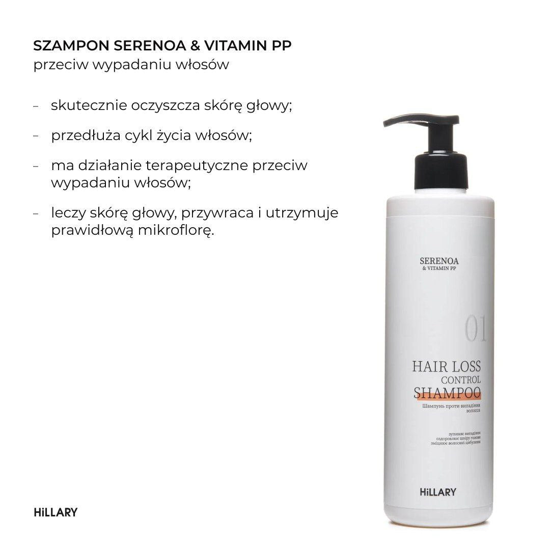 Szampon przeciw wypadaniu włosów Hillary Serenoa & PP, 500 ml