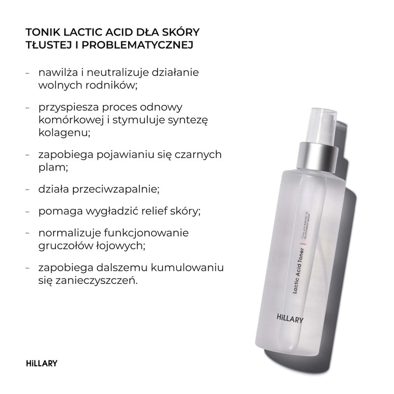 Tonik do skóry tłustej i problematycznej Hillary Lactic Acid Toner, 200 ml