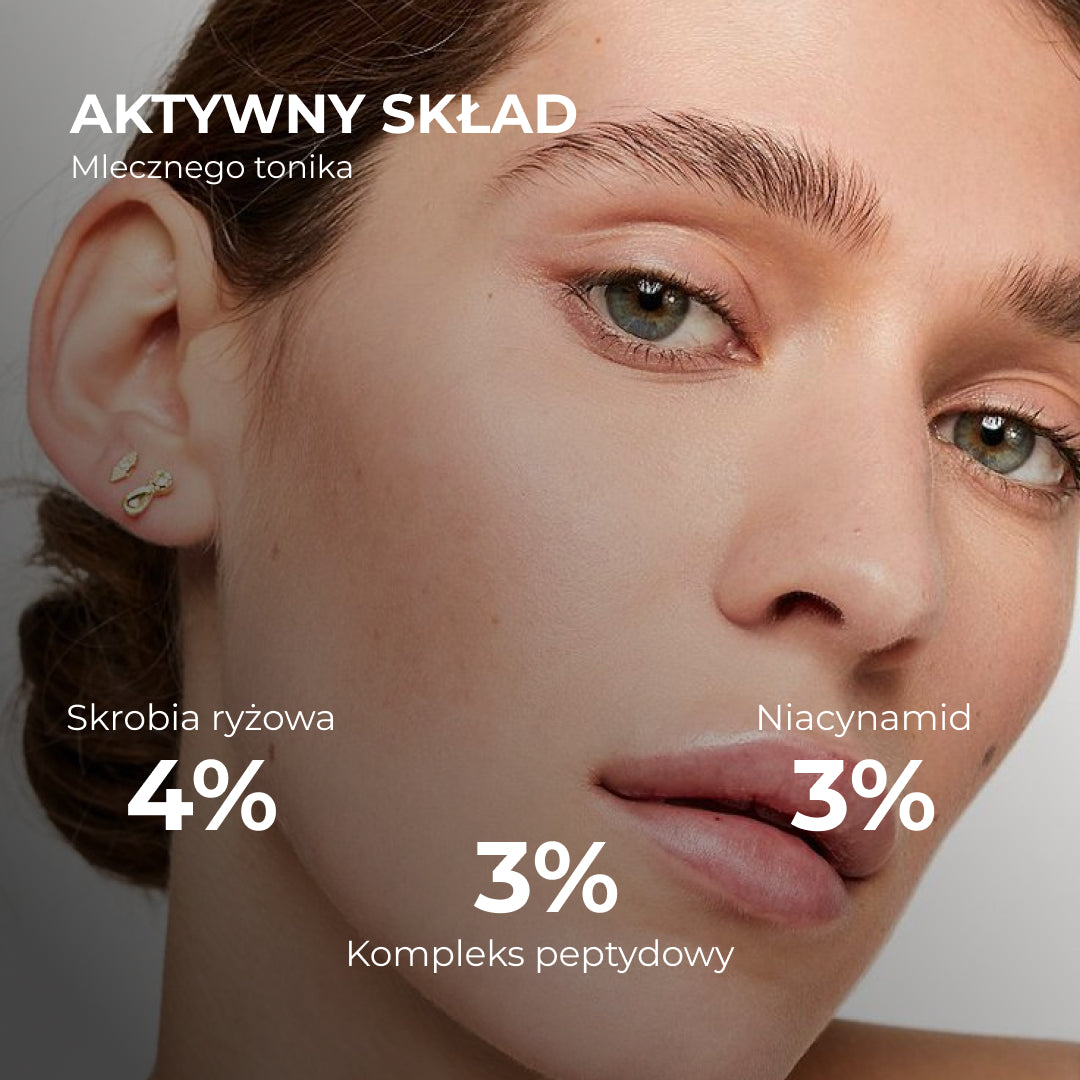 Po 6 tygodniach stosowania toniku-mleczka zaobserwowano zmniejszenie ilości stanów zapalnych o 48%, co świadczy o jego działaniu kojącym i przeciwzapalnym. Poziom nawilżenia skóry poprawił się o 61%, co wskazuje na wzmocnienie bariery skórnej. Preparat pomaga również rozjaśnić plamy pigmentacyjne nawet do 32%, wyrównując koloryt twarzy i poprawiając ogólny wygląd skóry.