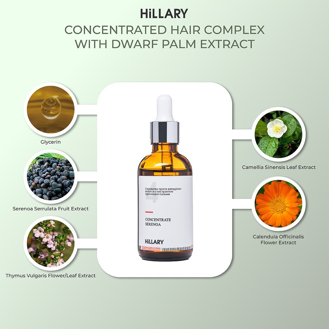 Wysoko skoncentrowany kompleks do włosów z ekstraktem z palmy sabałowej Hillary CONCENTRATE SERENOA, 50 ml