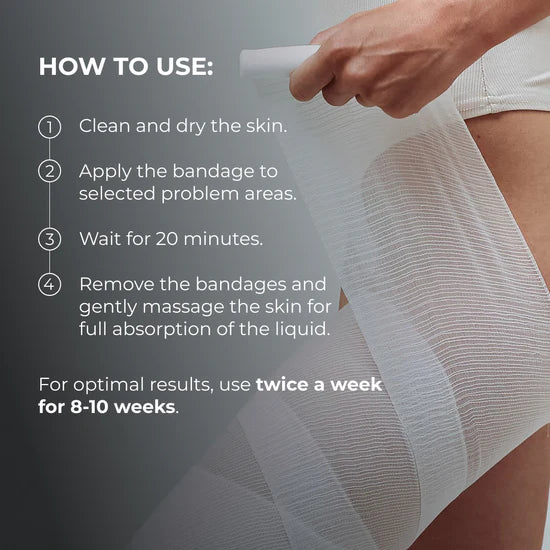 Odkryj skuteczną, profesjonalną pielęgnację skóry w domowym zaciszu z zestawem antycellulitowych bandaży „Pięć rodzajów bandaży”.