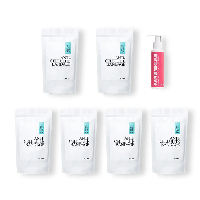 Zestaw chłodzących bandaży antycellulitowych Hillary Anti-Cellulite Pro (6 opakowań) + olejek antycellulitowy Grapefruit Hillary
