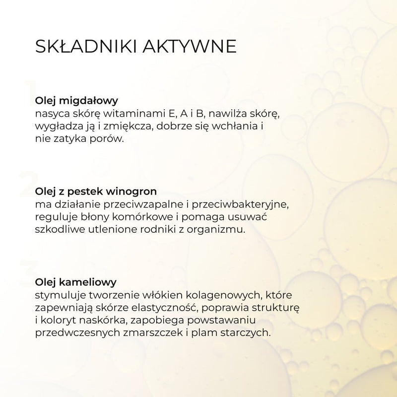 Pianka oczyszczająca do skóry normalnej z 5 olejkami tworzy substancję podobną do warstwy lipidowej, która utrzymuje korneocyty - komórki tworzące warstwę rogową naskórka - bez szkody dla mikrobiomu, wzmacnia barierę lipidową i zachowuje naturalną równowagę pH skóry, dokładnie rozpuszcza i usuwa nawet najbardziej uporczywy makijaż, nadaje skórze przyjemny odcień i wyrównuje jej koloryt.