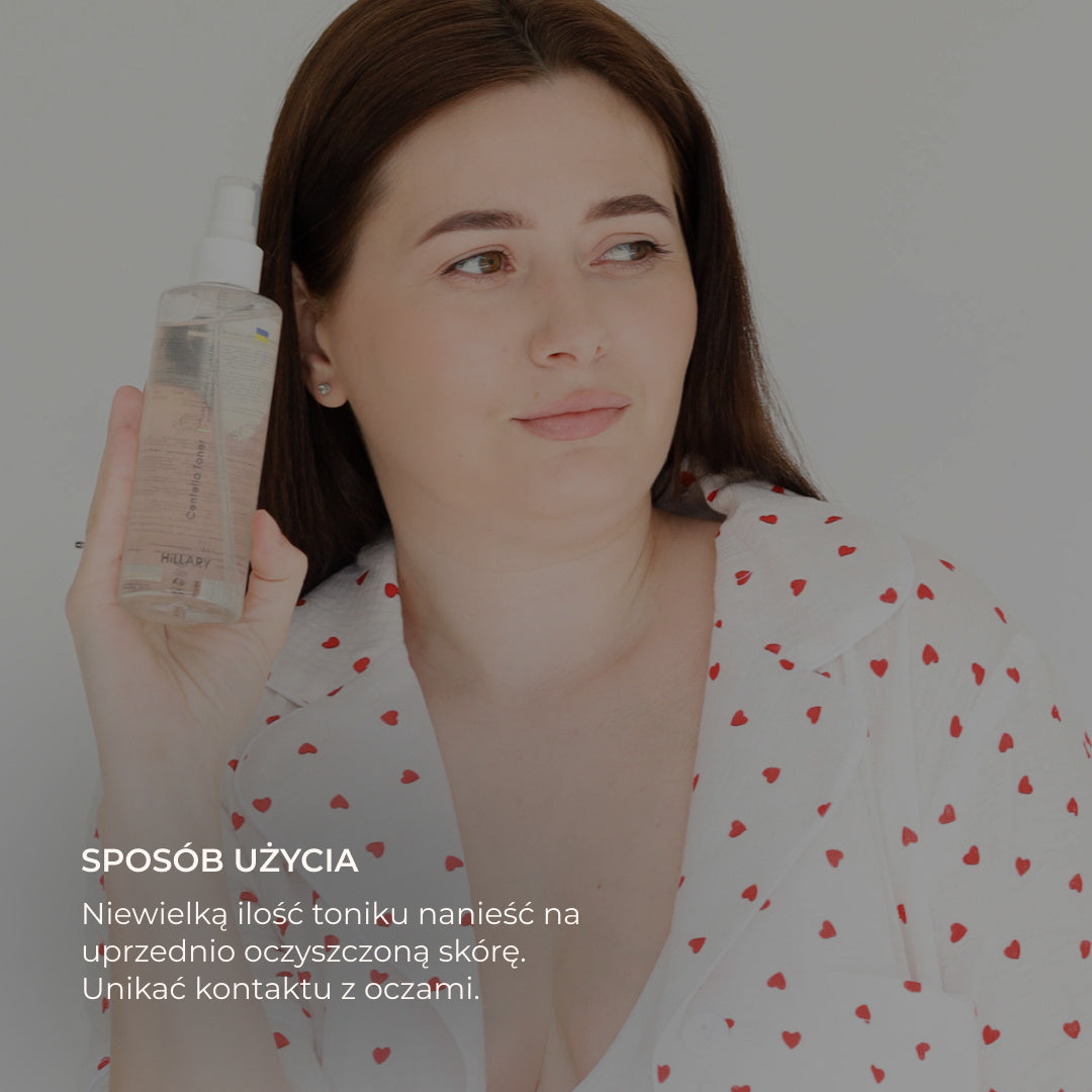 - Nałóż niewielką ilość toniku na uprzednio oczyszczoną skórę. Unikać kontaktu z oczamii.