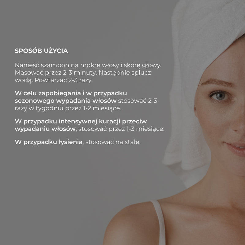 Ekspertny kompleks przeznaczony do walki z wypadaniem włosów wzmacnia cebulki włosów, przyspiesza wzrost nowych włosów, stymuluje szybsze przejście z fazy wzrostu włosów telogenu do anagenu, a także aktywuje procesy metaboliczne w skórze głowy.