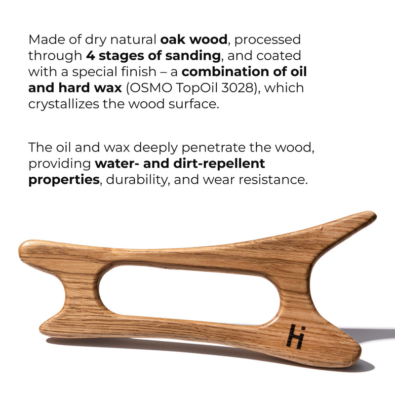 Skrobak ma 4 boki robocze do masażu gwaszowego i 4 kąty robocze do masażu akupresurowego. Można nim masować zarówno duże obszary ciała, jak i małe obszary twarzy.