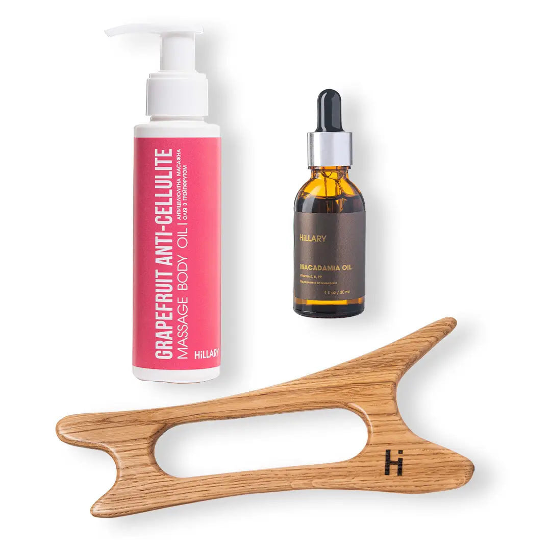 Po masażu skrobakiem gwaszowym należy zastosować olejek do twarzy i ciała. Ten zestaw zawiera olejek makadamia do twarzy i olejek grejpfrutowy do ciała. Oprócz dobroczynnych właściwości, olejki zostały zaprojektowane przede wszystkim w celu bezbolesnego i wygodnego przesuwania skrobaka po ciele, dzięki czemu zabieg masażu jest wygodny i wyjątkowo skuteczny.