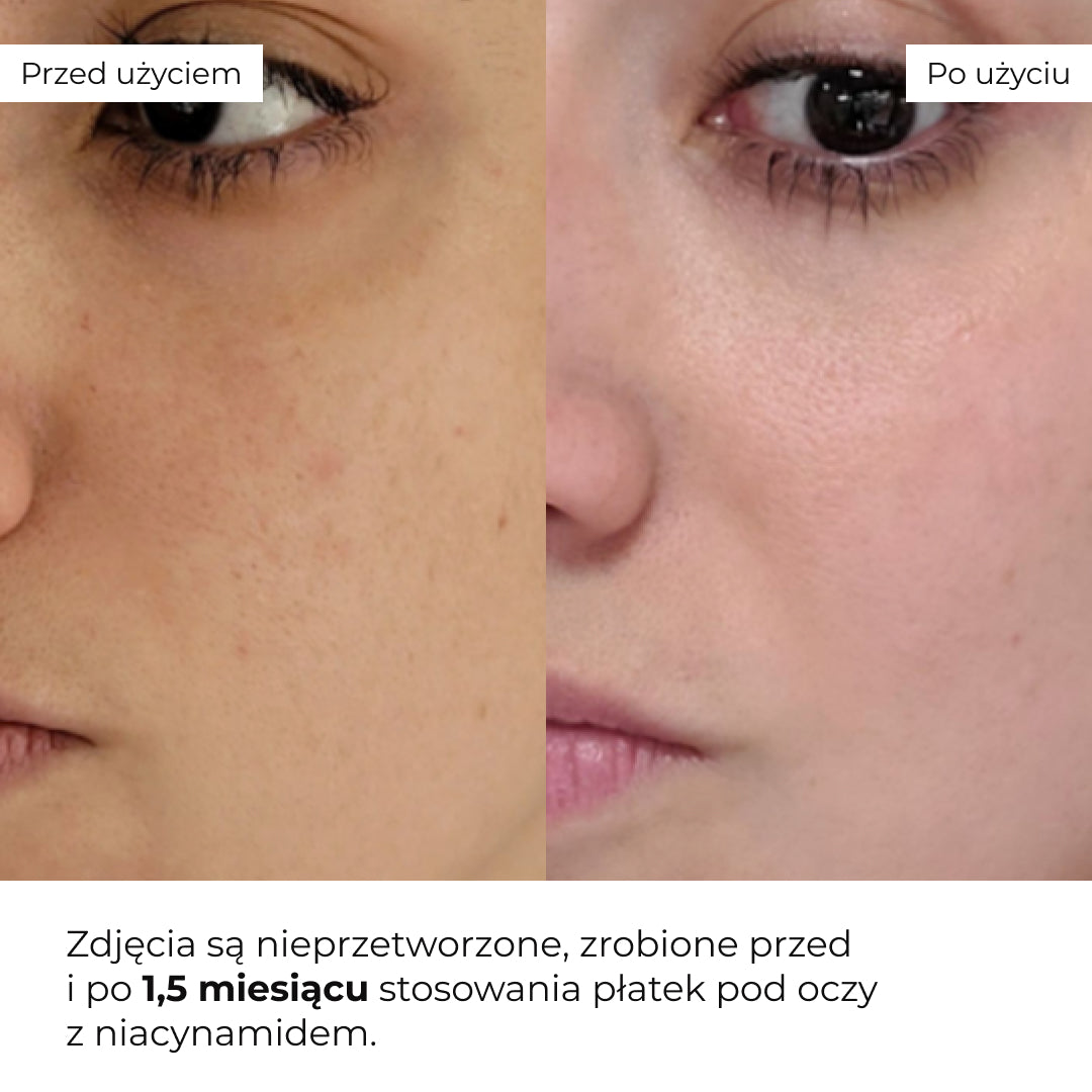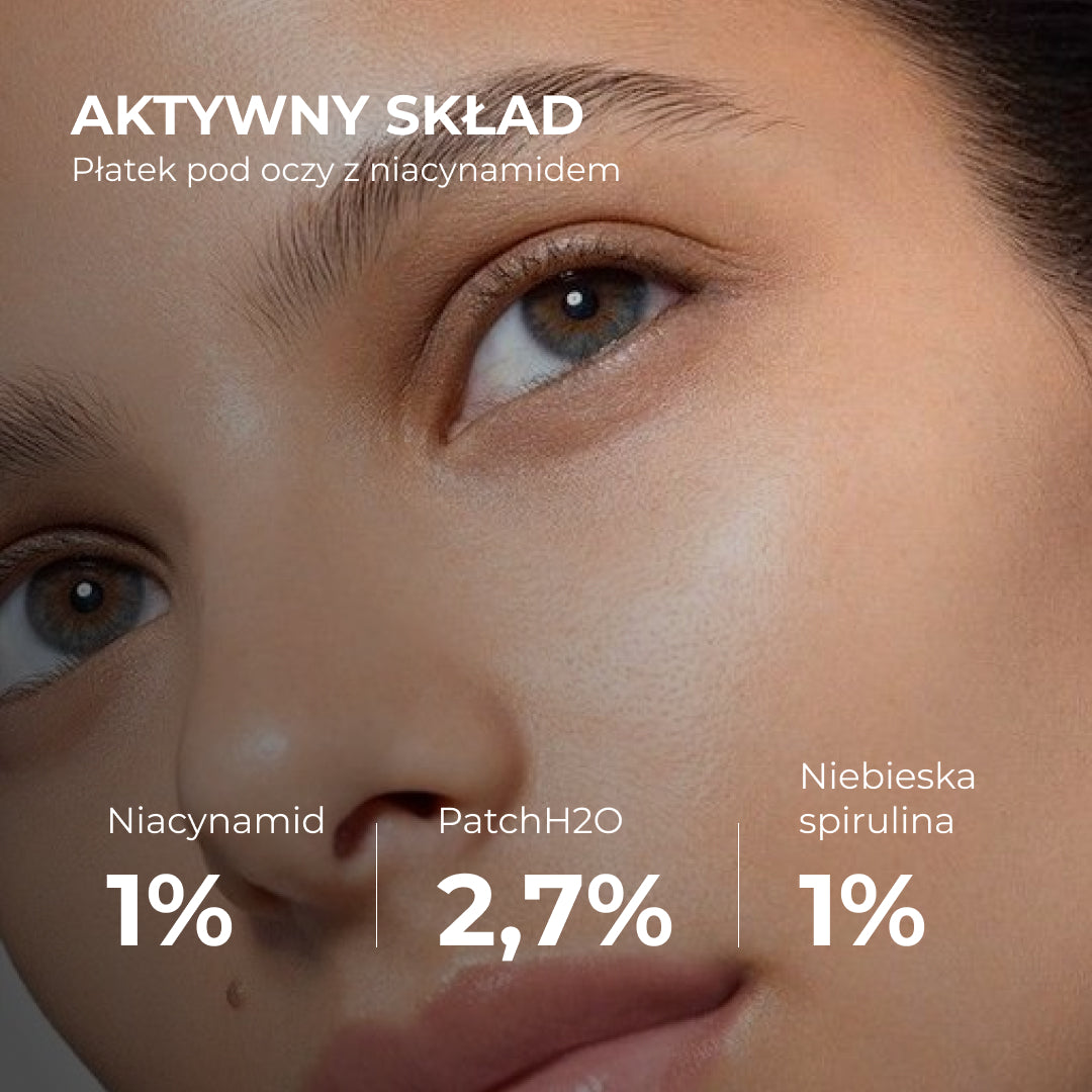 Wielofunkcyjne plastry z aktywnymi składnikami, które przeciwdziałają drobnym zmarszczkom i oznakom zmęczenia skóry oraz zapewniają jędrność i nawilżenie okolic oczu. Niacynamid wykazuje aktywne działanie przeciwstarzeniowe, wspomaga odbudowę funkcji barierowej skóry, redukuje stany zapalne naczynek i poprawia jędrność skóry, zmniejszając widoczność drobnych zmarszczek.