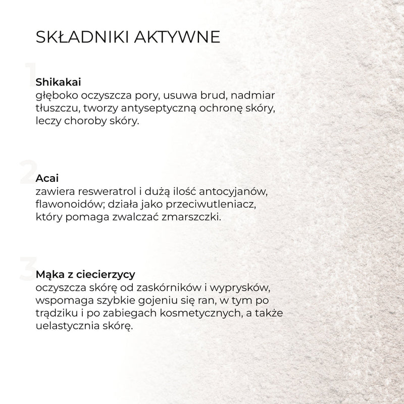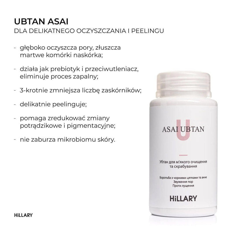 Ubtan do delikatnego oczyszczania i złuszczania ASAI UBTAN głęboko oczyszcza pory, niweluje stany zapalne, nawilża, nie wysusza skóry, delikatnie i dokładnie ją oczyszcza, nie powoduje podrażnień ani żadnych nieprzyjemnych uczuć, pomaga zredukować przebarwienia potrądzikowe i słoneczne oraz nie zaburza mikrobiomu skóry.