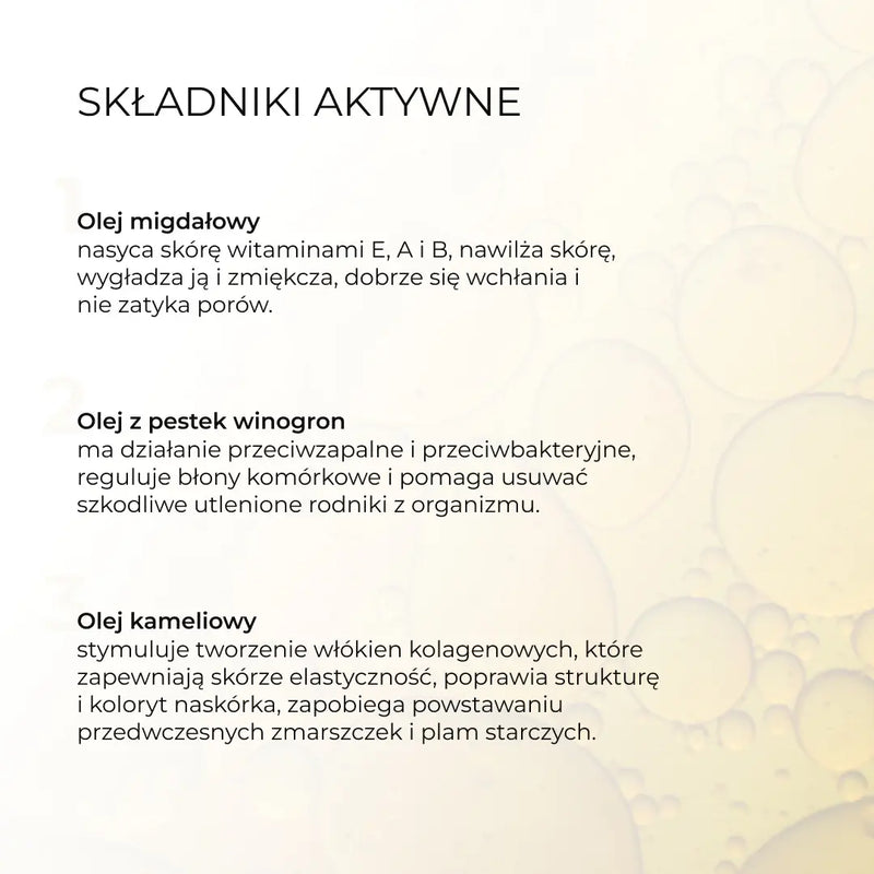 Pianka oczyszczająca do skóry normalnej z 5 olejkami tworzy substancję podobną do warstwy lipidowej, która utrzymuje korneocyty - komórki tworzące warstwę rogową naskórka - bez szkody dla mikrobiomu, wzmacnia barierę lipidową i zachowuje naturalną równowagę Ph skóry, dokładnie rozpuszcza i usuwa nawet najbardziej trwały makijaż, nadaje skórze przyjemny odcień i wyrównuje jej koloryt.