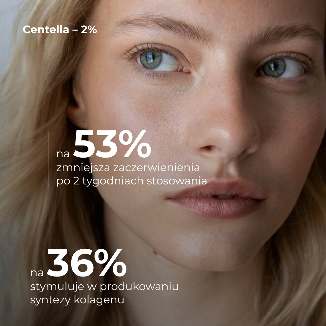 Kluczowy składnik aktywny — ekstrakt z centelli azjatyckiej — znany jest ze swoich silnych właściwości regenerujących, przeciwzapalnych i łagodzących.