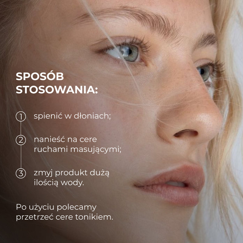 - Spień żel balansujący z niacynamidem w dłoniach i nałóż na skórę, wykonując masażowe ruchy. Spłucz dużą ilością wody. Po użyciu zaleca się przetarcie skóry tonikiem.